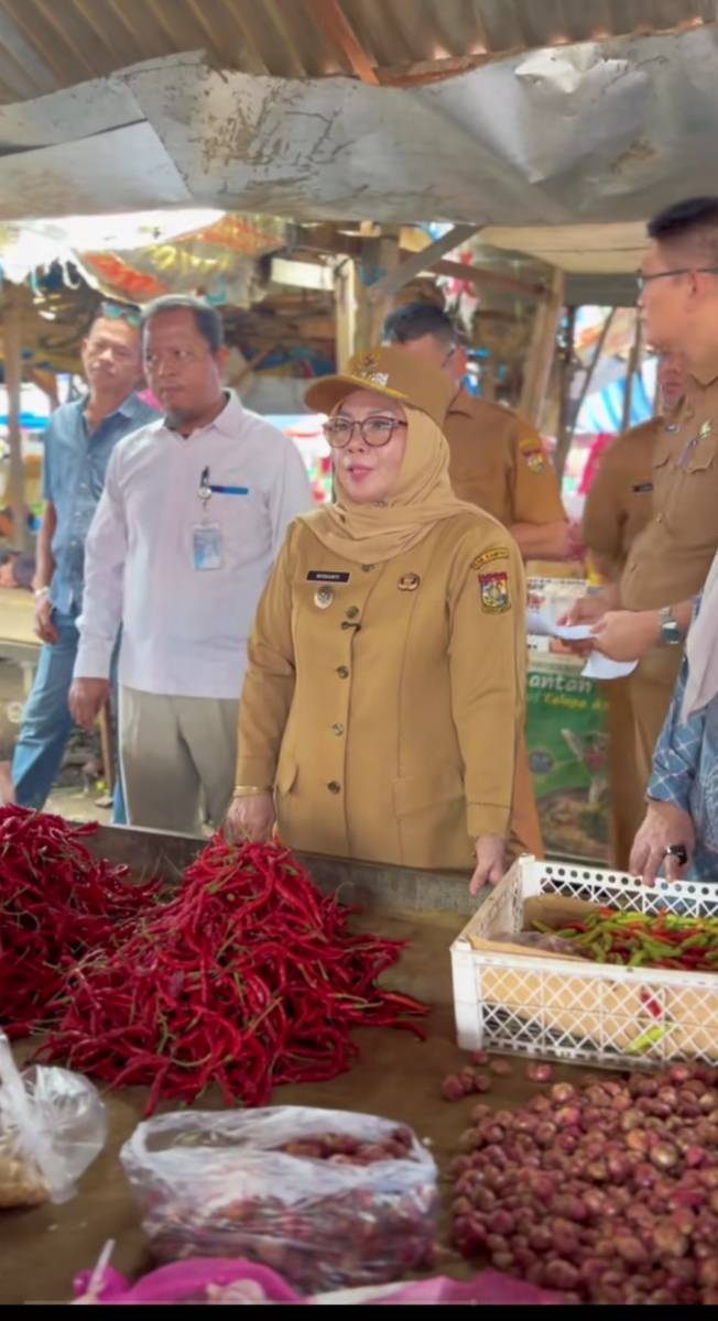 Dalam sidak tersebut, Misharti turun langsung meninjau aktivitas pasar, memantau harga sembako, sekaligus berdialog dengan para pedagang dan masyarakat yang sedang berbelanja.